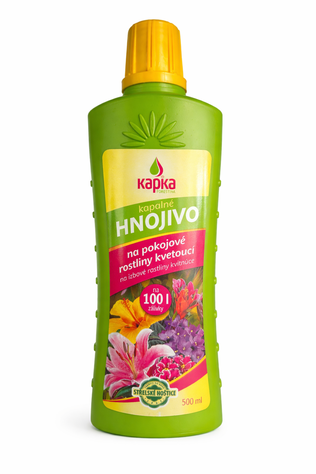 Tekuté hnojivo KAPKA na izbové kvitnúce rastliny je vysoko účinné a ľahko aplikovateľné. Má vyvážený pomer živín, ktorý podporuje tvorbu listovej zelene a prispieva k bohatej tvorbe pukov. Používa sa na prihnojovanie všetkých druhov kvitnúcich izbových rastlín.
